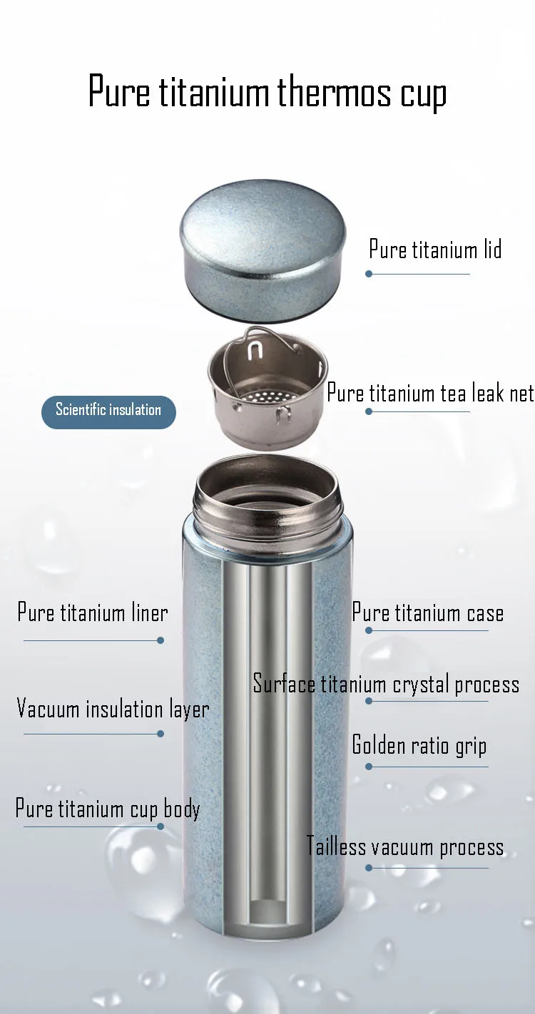 200/300/380/480ML Business Thermos Cup With Tea Bin For a Gift ,Pure Titanium Vacuum Flasks,Office Drinkware,Car WATER BOTTLE